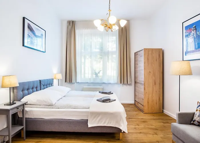 Apartmán Apartament Na Groblach o rozloze 60 m^2 se nachází ve čtvrti Stare Miasto 10 minut chůze od Sukiennice a pojme až 4 hostů. Ubytování se skládá z 2 ložnic a kuchyně.